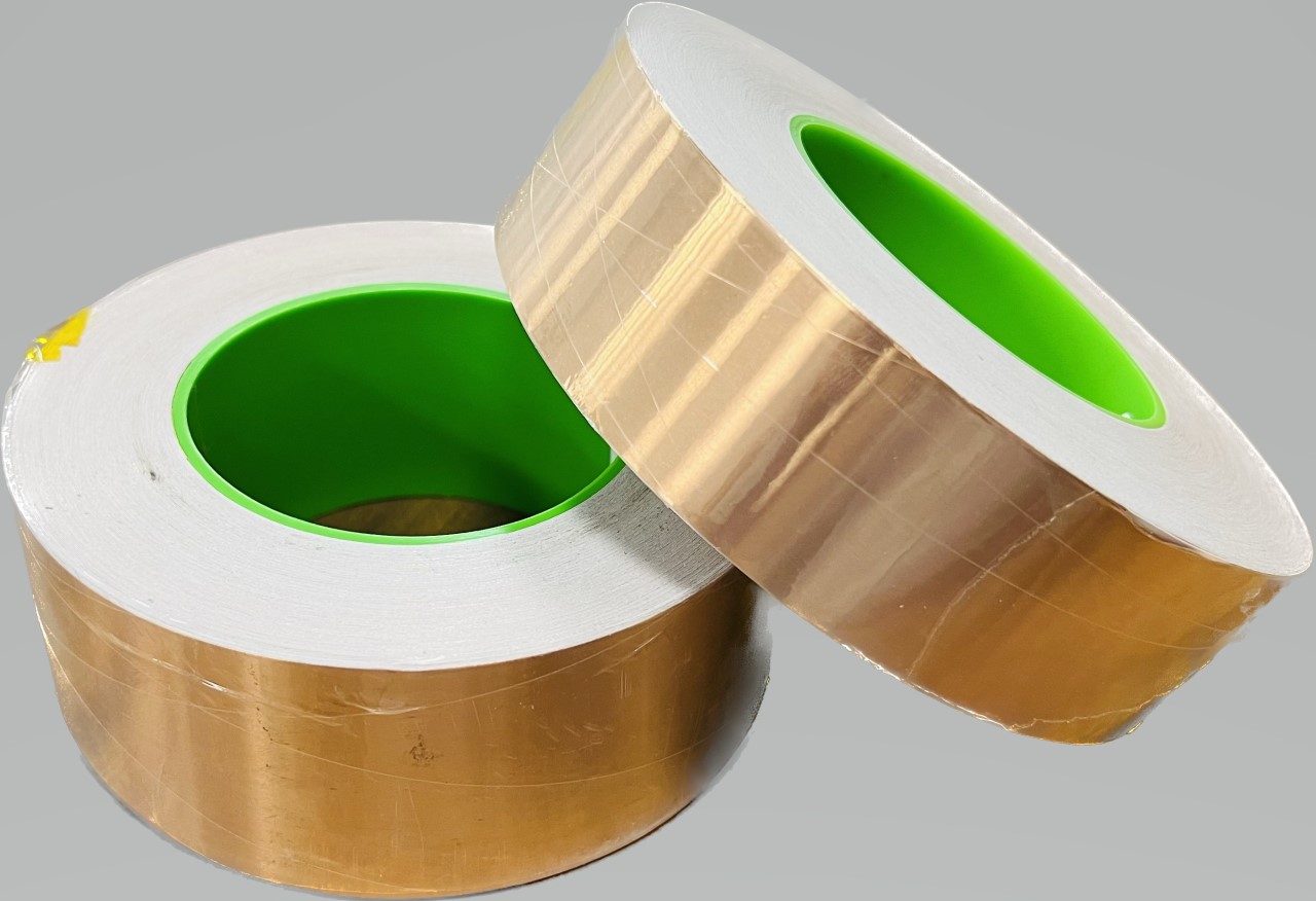 以銅箔為基材,塗布導電膠或壓克力膠組合,分為一種單面導、雙面導通金屬膠帶,具優良導電及導熱效果。